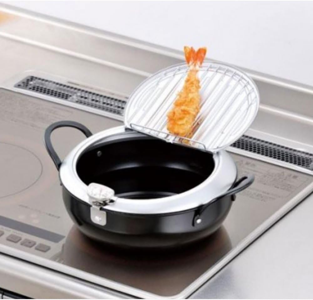 - 揚げ物が中央に集まるので揚げやすい 市販の鍋つかみやフタが合いやすい